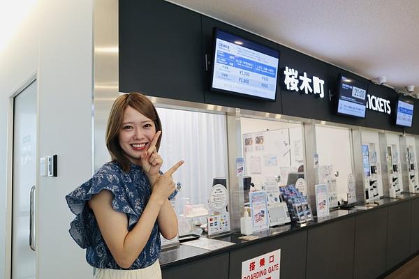 JR桜木町駅の東口側にやってきました。このYOKOHAMA AIR CABINの乗り場は、駅の目の前にあります。今、横浜で人気の乗り物で、2024年7月には開業わずか3年ほどで、累計搭乗者数500万人を達成。