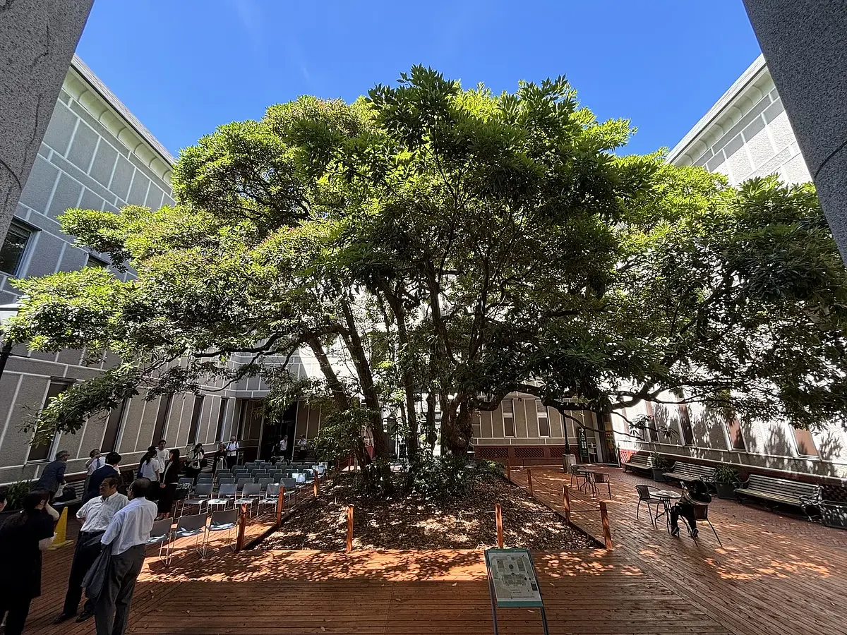 横浜開港資料館では2025年5月下旬に「たまくすの木」に憩うバリアフリーデッキが完成したばかり。バリアフリーデッキによって広がった空間には老舗洋菓子店「横浜モンテローザ」を運営する株式会社三洋物産提供の椅子とテーブルが設置され、前よりもっと快適に過ごせるようになりました♡