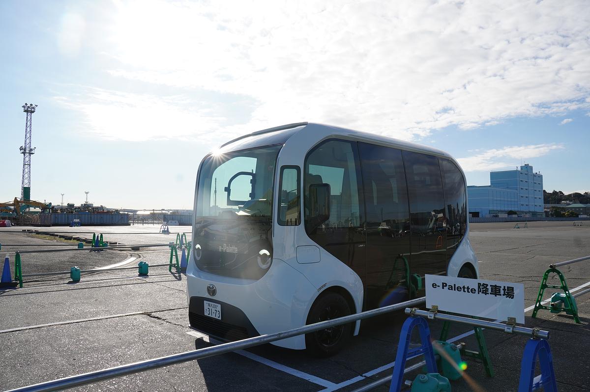 歩くと15分ほどかかるふ頭内の道のりも、このe-Paletteに乗れば快適そのもの。