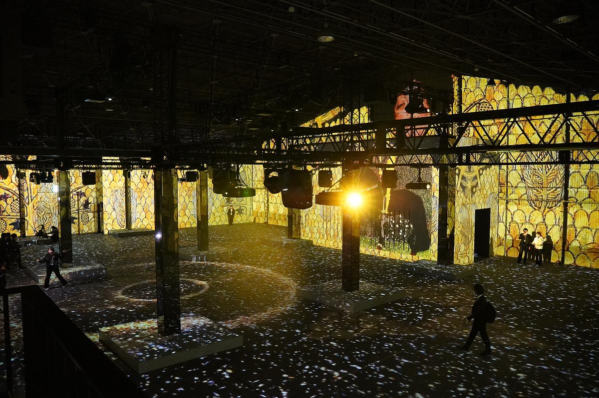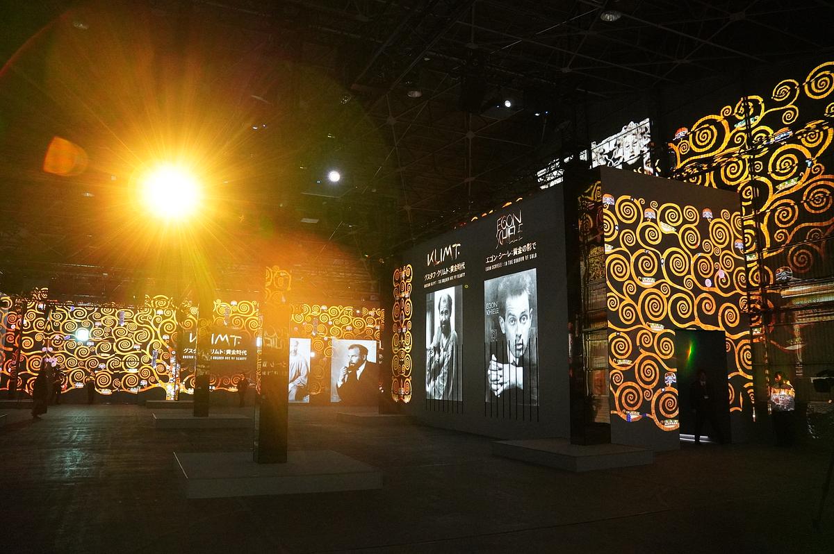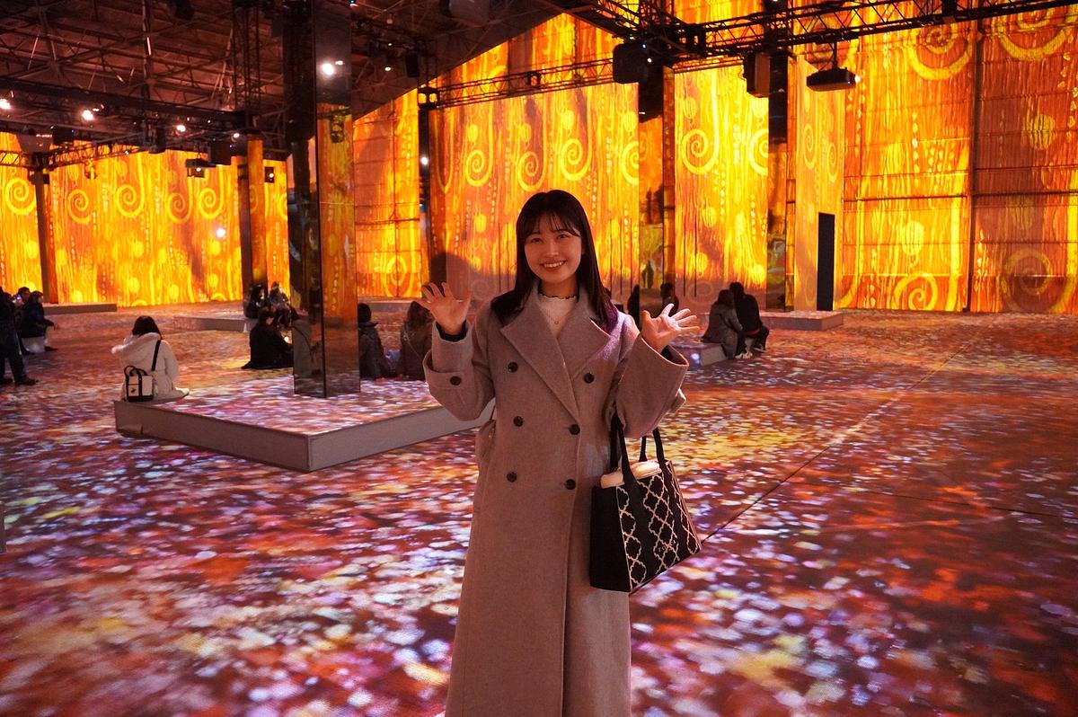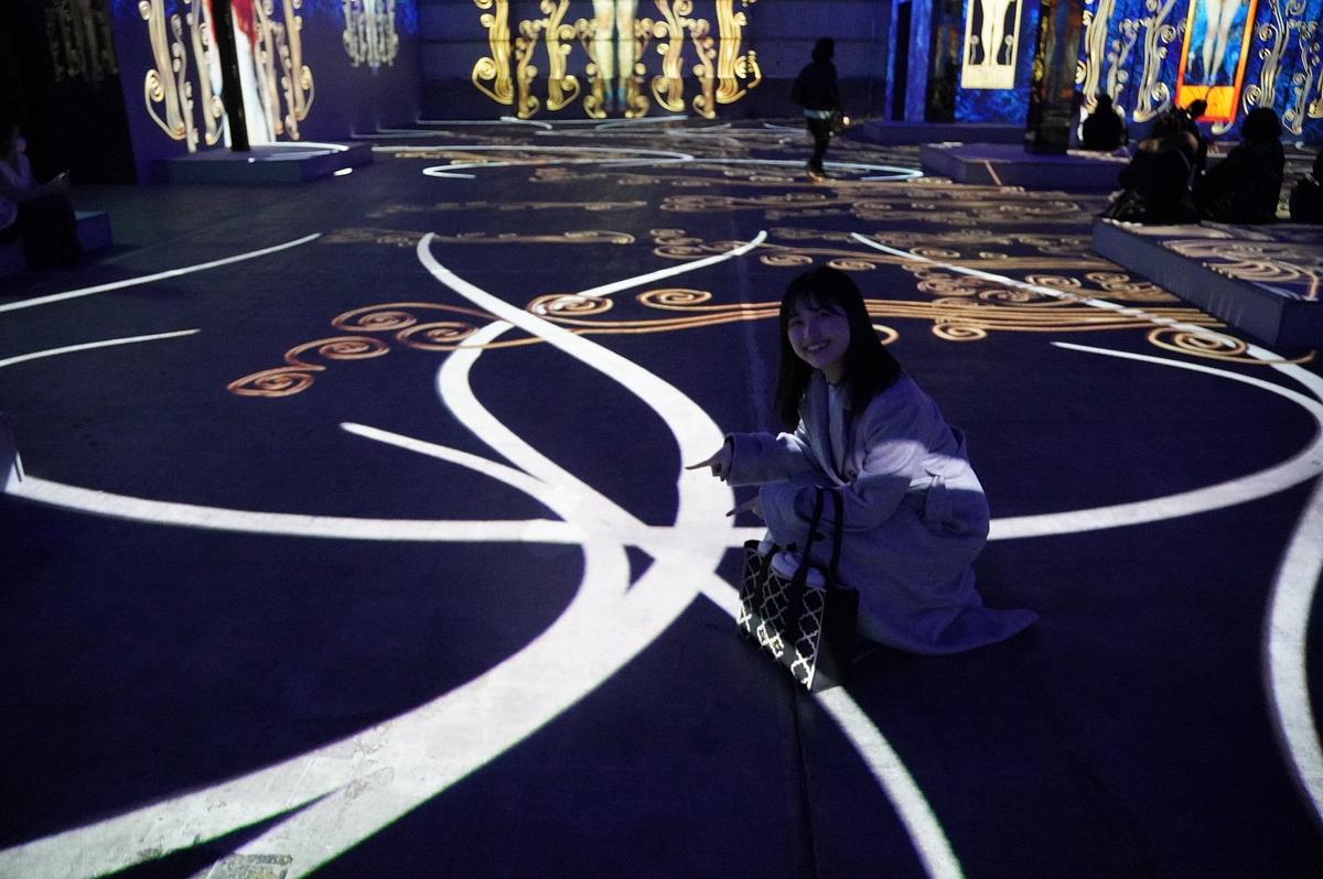 クリムトの名作『接吻』などが壁や床一面に映し出され、空間全体が黄金色に輝きます。自分自身が煌びやかな絵画の一部になったかのような感覚を味わえます♪