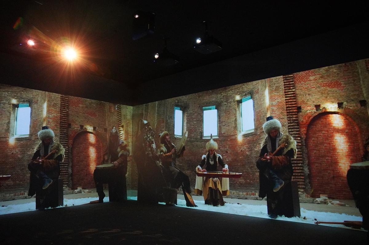 世界各地の音楽文化を記録した映像作品に、360度囲まれる体験。中央に立つと音が立体的に集まり、まるでその土地に降り立ったような感覚になります。