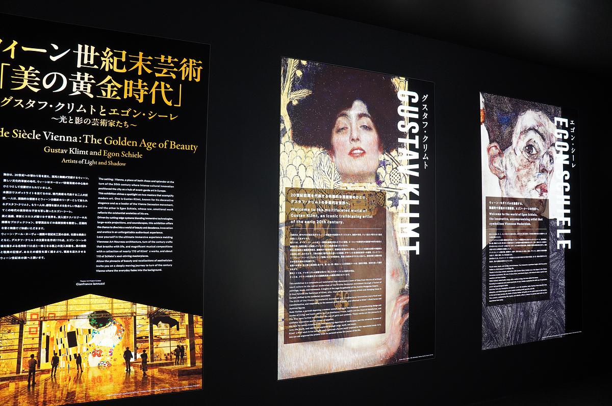 クリムト、シーレのパネルがお出迎え。じっくり読んだら、いよいよシアター内へ・・・!