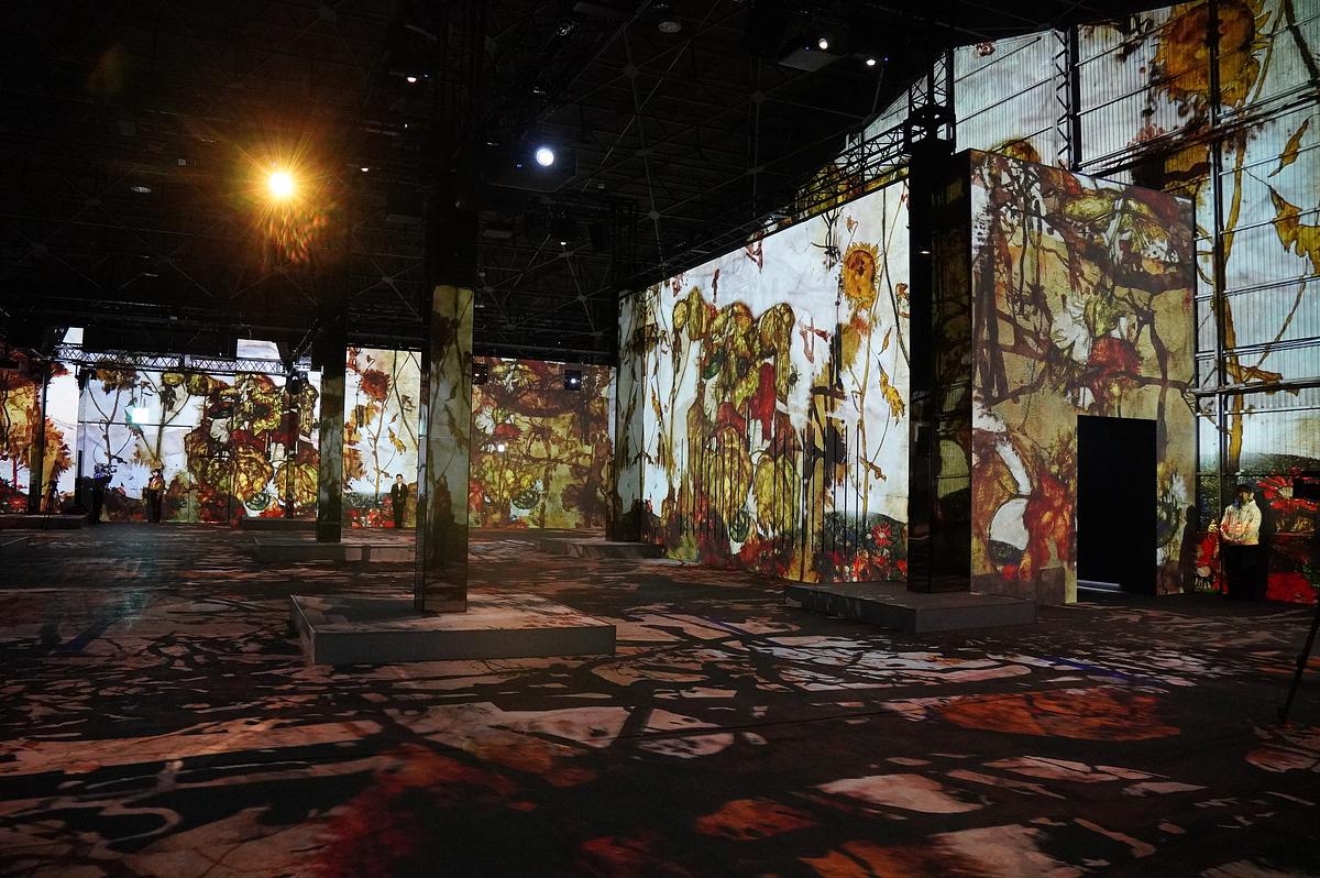 ベートーヴェンやモーツァルトの壮大な調べに包まれ、作品の細部までが巨大な映像となって迫ってくる様子は、従来の美術館での鑑賞とは全く異なる感動があります。