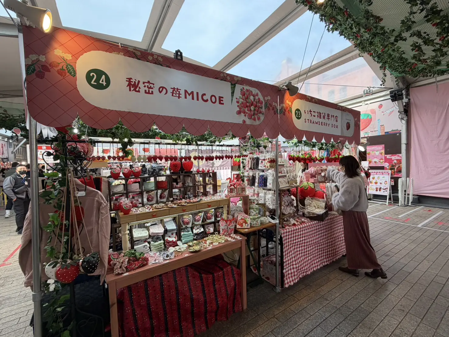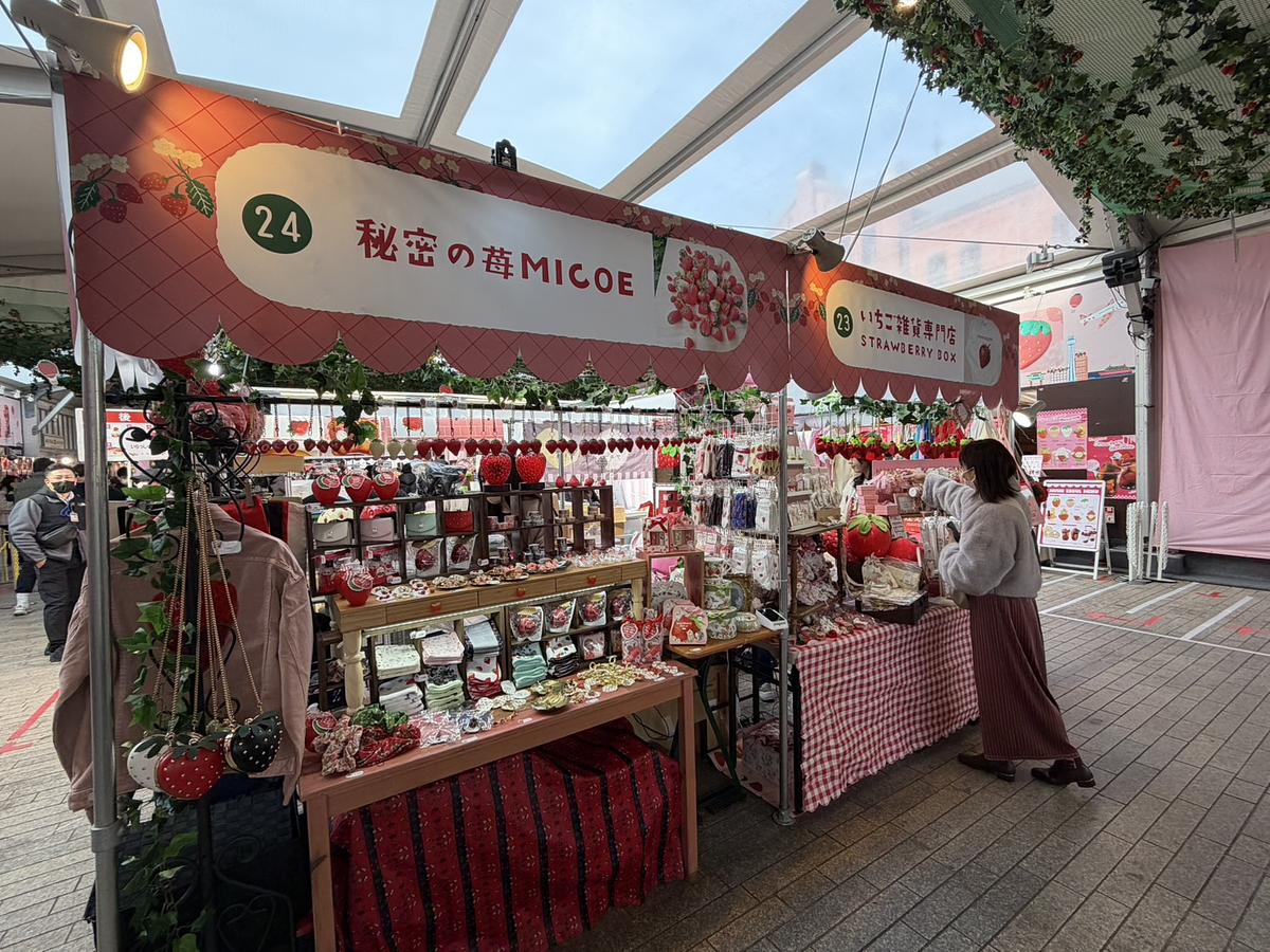 会場内には、いちごをテーマにしたスイーツや雑貨、体験型コンテンツがずらりと並びます。