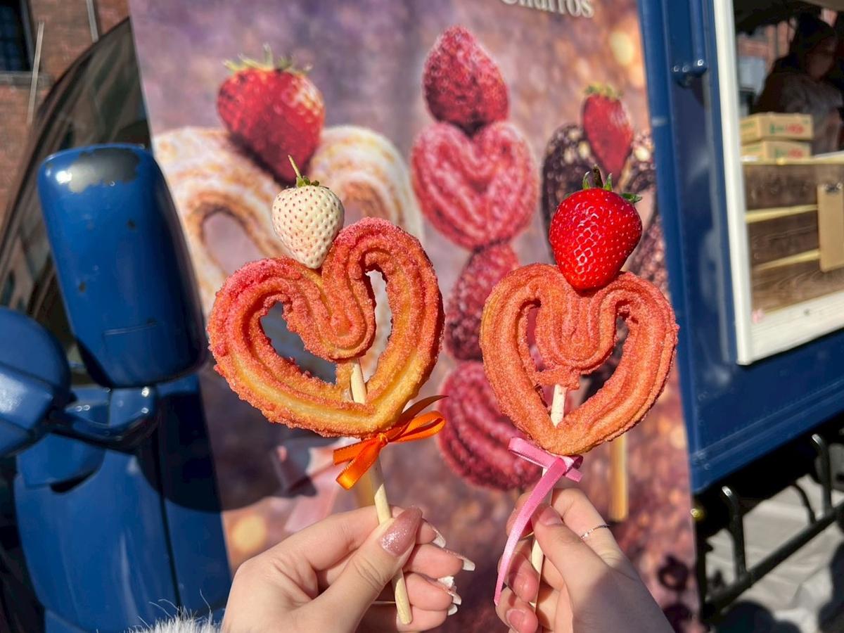 ハート型の可愛らしいフォルムが目を引く米粉チュロスに、甘酸っぱいいちごがトッピングされた一品。外はさくっと、中はもっちりとした食感で、見た目も味も楽しめました。