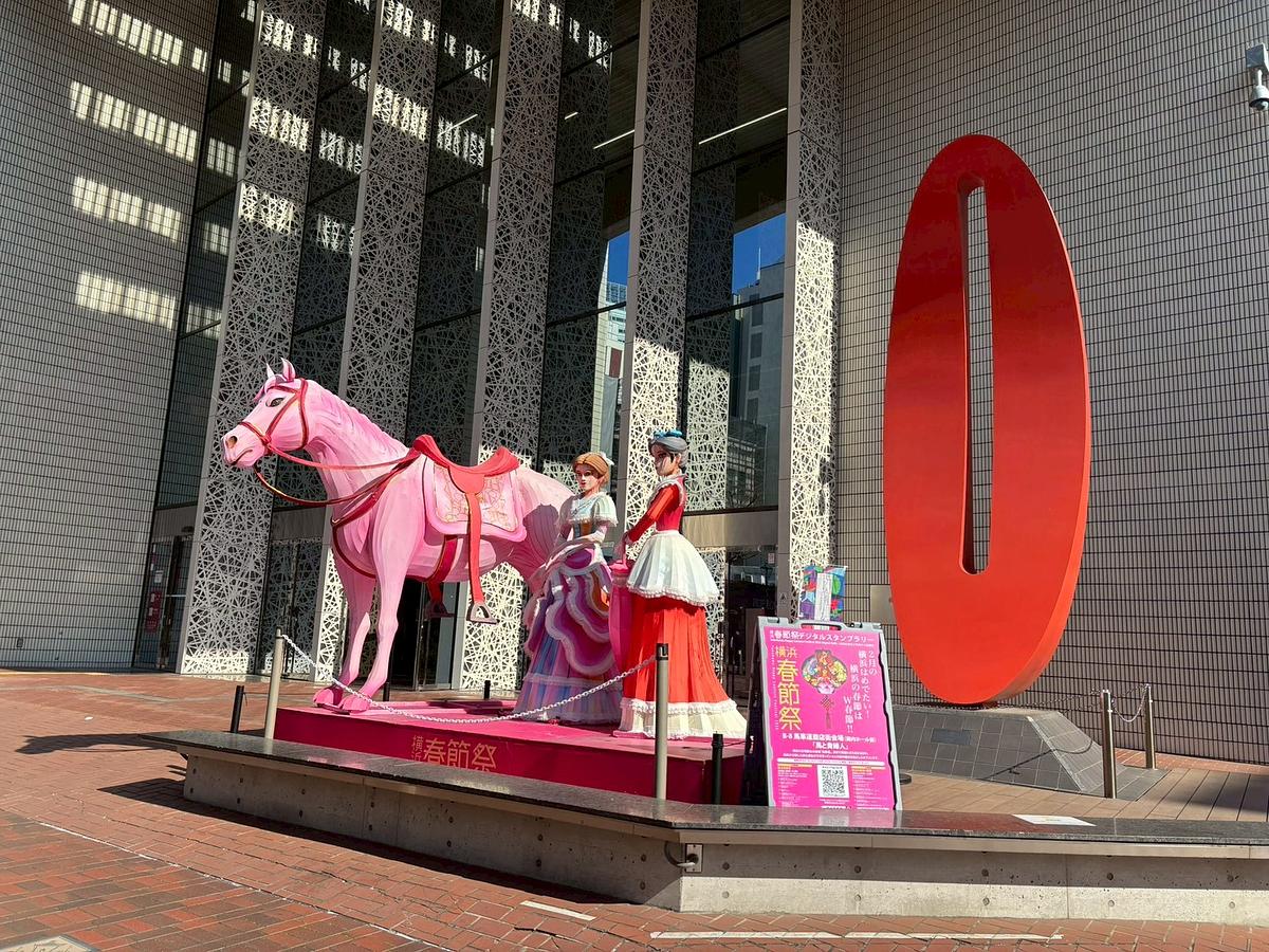 春節の時期は、かなり大きな馬車道らしいオブジェが置いてあって、迫力大です!