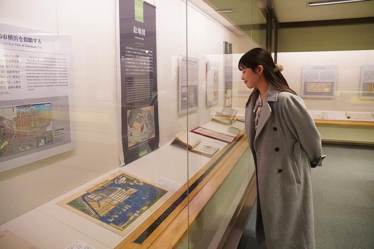 館が所蔵する約27万点の中から厳選された資料が並び、古文書や海外資料、写真、絵地図、浮世絵など、普段なかなか目にすることのできない貴重な実物が展示されています。