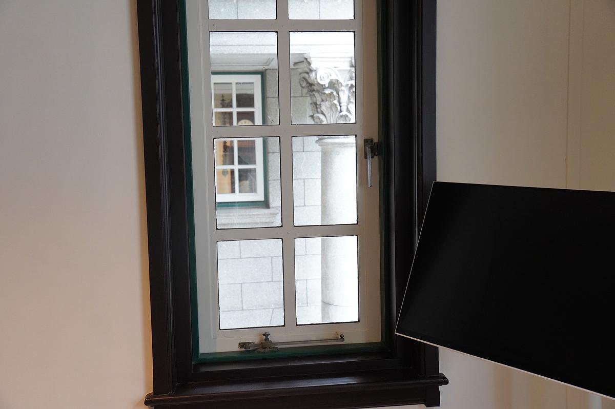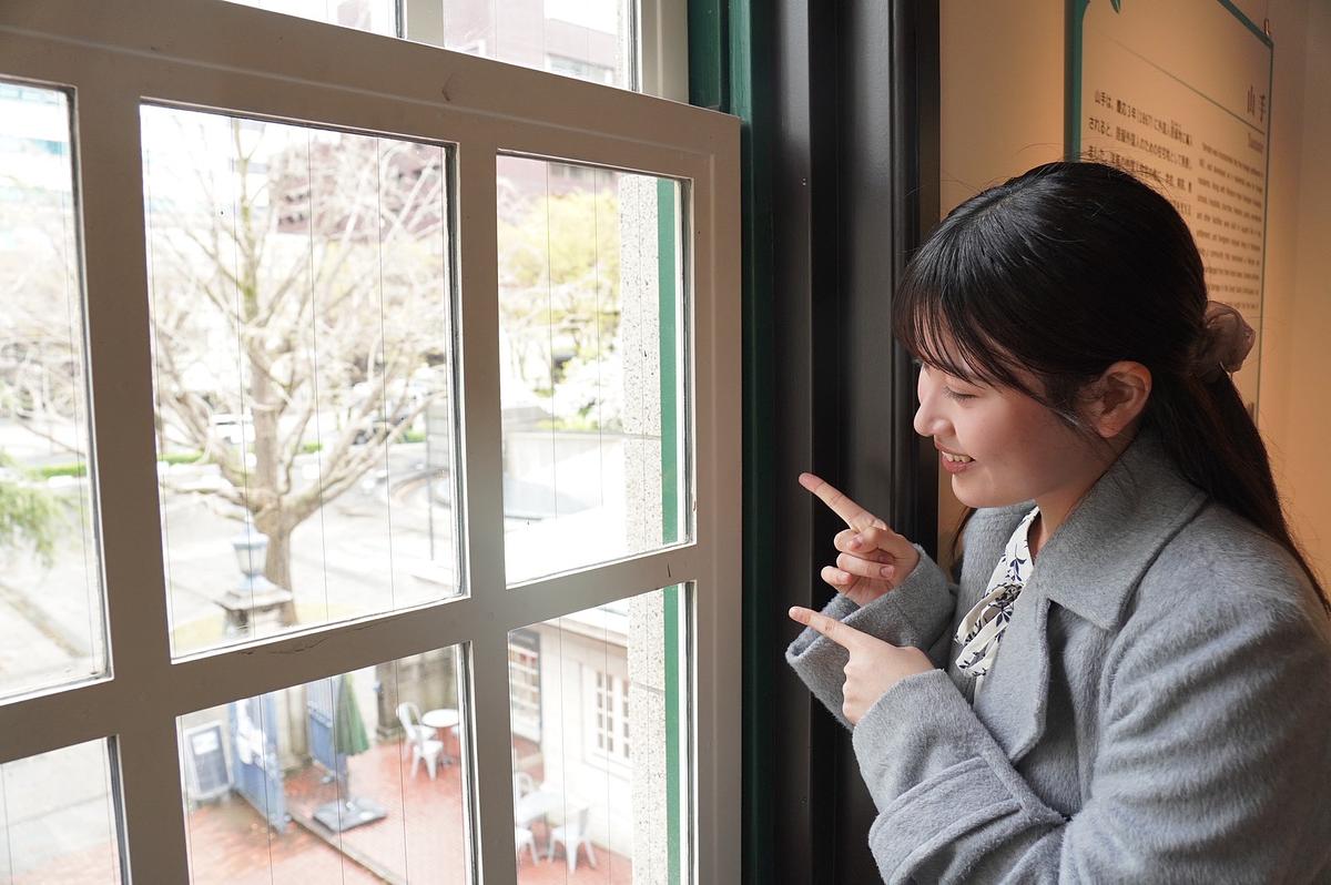 窓枠の深緑の色味は、当時の塗装を再現したものだそう。ぜひチェックしてみてください◎