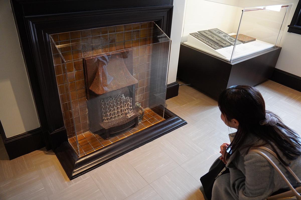 館内には、当時使われていた暖炉も各所に残されていて、煙道管の展示とあわせて、建物の歴史をぐっと身近に感じられるのもポイント。