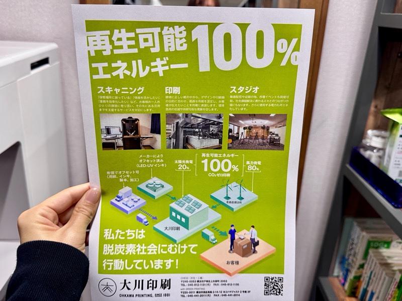 崎陽軒のシウマイの包装紙なども手がける大川印刷が、再生可能エネルギー100%で運営する社会課題解決型スタジオです。