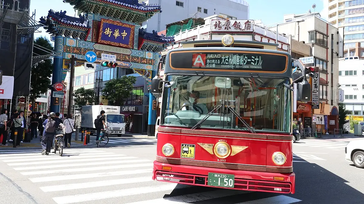 桜木町駅から「あかいくつ」という観光スポットを周遊する市営バスに乗車