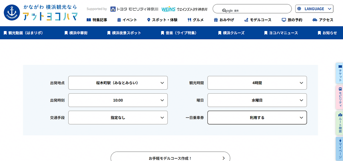 AIが横濱観光モデルコースを瞬時に作成してくれるんです。自分で、コースを考えなくて良いのも、すごく効率が良いですね!