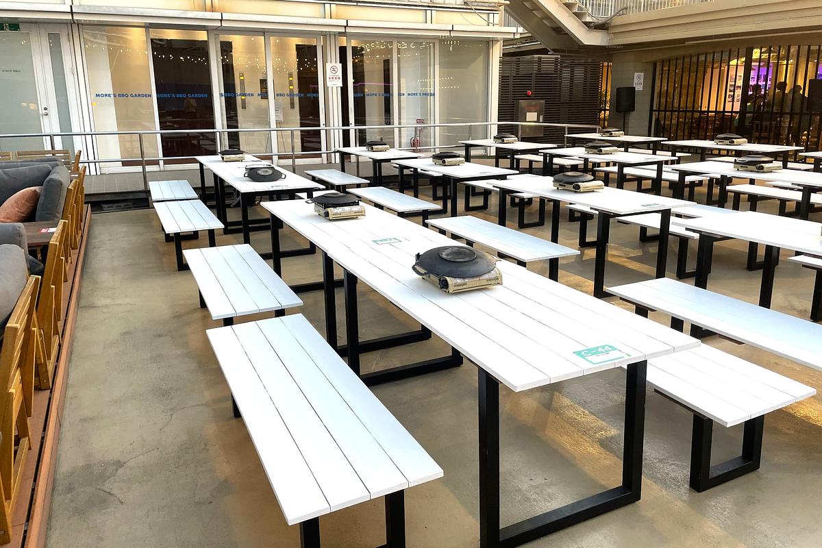 BBQは、マルチグリドルを使ったセルフスタイル。各テーブルで自由に焼き上げることができるため、出来立てならではの美味しさをその場で楽しめます。